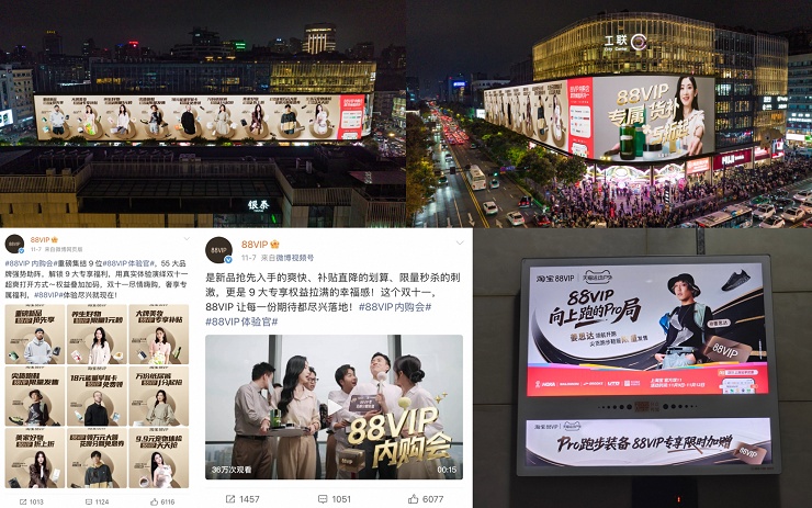 线上Pro局特权:专属权益矩阵,打造会员购物狂欢 在强大的内容势能铺垫下,88VIP为会员精心打造了极具吸引力的线上“Pro局特权”。 活动期间,除折上95折、大牌内购会等权益外,会员还可享“短袖外套1元起秒杀” “88VIP专享跑步尖货加赠”等独家权益,高端运动装备触手可及。此外,88VIP还整合了会员中心、App开屏、新品尝鲜频道等站内的亿级曝光资源,并在南京千块电梯分众大屏、杭州西湖工联CC巨幕投放,全域覆盖目标人群,确保每一位跑步爱好者都能看到这场专属福利。微博话题#向上跑的Pro局# 曝光量更突破千万级,成功将线上促销升级为一场席卷跑步爱好者的文化事件。