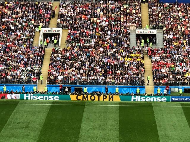 他表示,揭幕战上座率极高,但从观众席看来,俄罗斯的球迷们并没有表现出我们想象中"战斗民族"般的狂热。在5-0获得一场大胜之后,球迷们的热情才得以释放,散场时,球迷们纷纷呼喊起"RUSSIA"的口号。 谷子裕还提到,在莫斯科的行程中,有着球迷护照之称的"FAN ID"起到了极为关键的作用:当你手持FAN ID+球票,比赛日的机场快线、地铁等各项公共交通全部免费,就连去卫生间都不用花钱(莫斯科的部分卫生间实行收费制度)。 而在球场外的球迷广场,中国赞助商们仍然吸引着无数球迷的目光、万达、海信、vivo,中国品牌纷纷用各项黑科技让球迷们驻足……