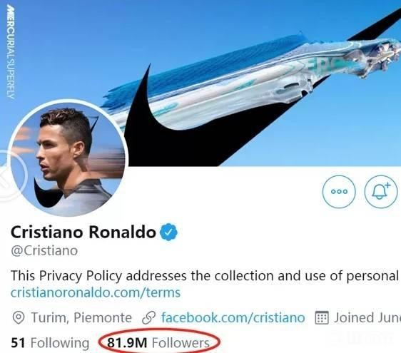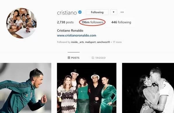 近日,根据数据媒体《Dugout》统计,尤文图斯球星C罗的社交媒体粉丝数已经达到了4亿,这个数字相当于超过了美国的3.31亿总人口,仅次于中国和印度的14亿和13亿人口。这位葡萄牙国脚成为第一个在脸书、Instagram和推特粉丝总数超过4亿的人。 根据国外知名博主ItalianFootballTV的报道称,在刚刚过去的2019年,C罗通过Instagram获得的收入为4270万欧元,这个数字已经超过了他在尤文图斯的年薪。