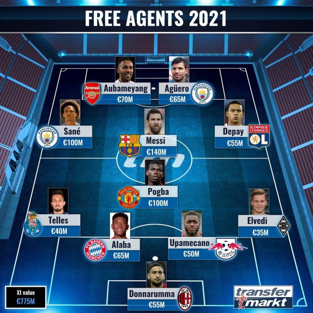 德国转会市场盘点了2021年进入合同年球员最贵阵容,梅西以1.4亿欧的身价领衔。 前锋:奥巴梅扬(阿森纳,7000万欧)、阿圭罗(曼城,6500万欧) 中场:萨内(曼城,1亿欧)、梅西(巴萨,1.4亿欧)、德佩(里昂,5500万欧)、博格巴(曼联,1亿欧) 后卫:特莱斯(波尔图,4000万欧)、阿拉巴(拜仁,6500万欧)、乌帕梅卡诺(莱比锡红牛,5000万欧)、埃尔韦迪(门兴,3500万欧) 门将:多纳鲁马(米兰,5500万欧)