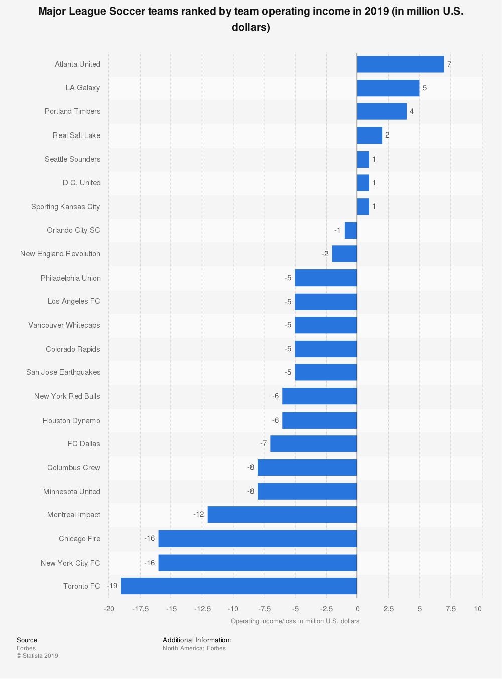 国际米兰控诉MLS侵犯其“国际”的商标 虽然迈阿密国际作为MLS的生力军,但是俱乐部在从成立之初,就收获了巨大的关注。贝克汉姆依靠成熟的商业头脑以及专业团队,迈阿密国际的商业开发已经在稳步推进。相对于商业开发而言,迈阿密国际目前更需要的是在MLS中站稳脚跟,收获更多忠实的球迷。 仅有1/3的球队实现盈利,MLS仍努力追赶北美四大体育联盟 与美国四大职业体育联盟相比,MLS还略显稚嫩。历史最悠久的MLB已经有151年历史;NHL以及NFL分别拥有103年以及100年的历史;就连创立时间最短的NBA,也有74年的历史。从1996年创立时仅有的10支球队,到2020年联盟阵容扩军到26支球队,MLS的发展速度,让人惊讶。